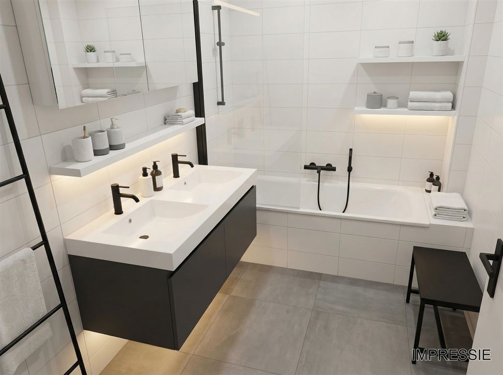 Opmerkingen: toilet, lavabomeubel met spiegelkast, ligbad